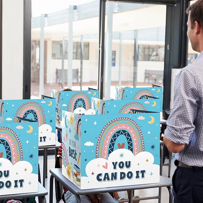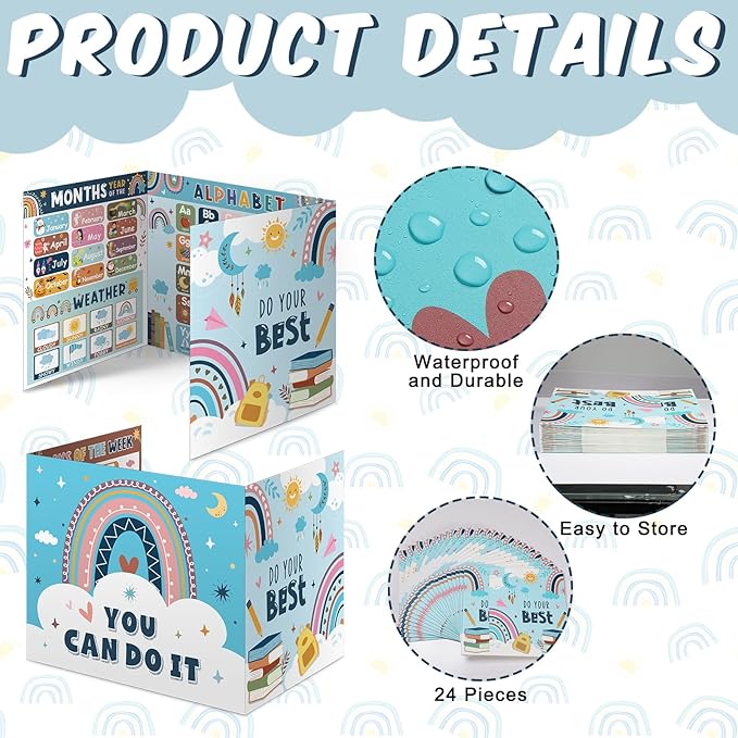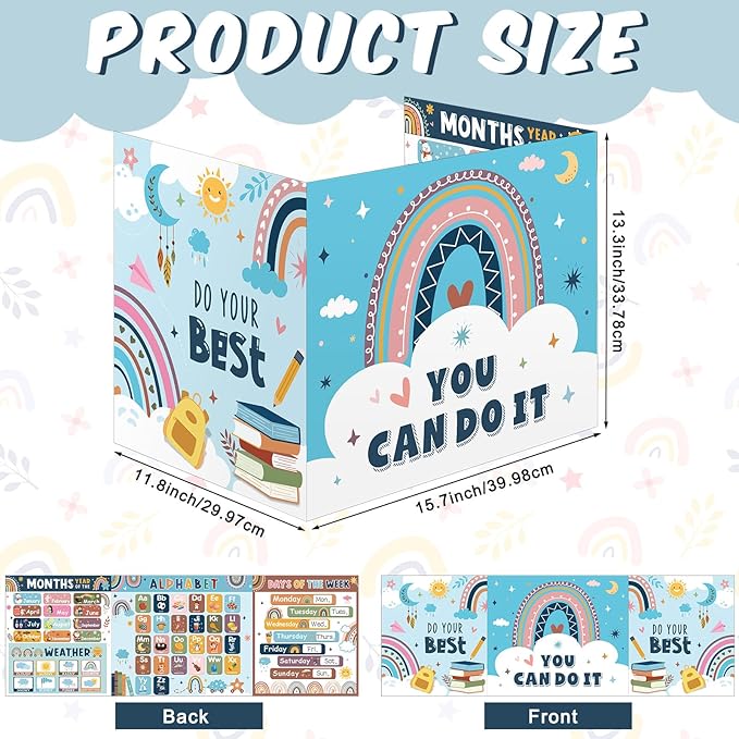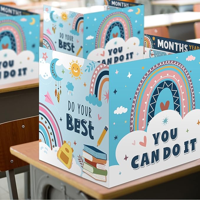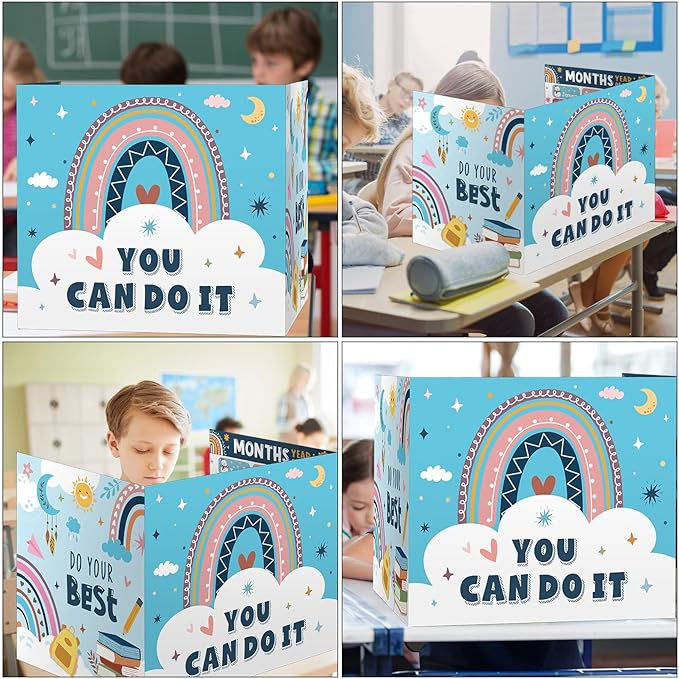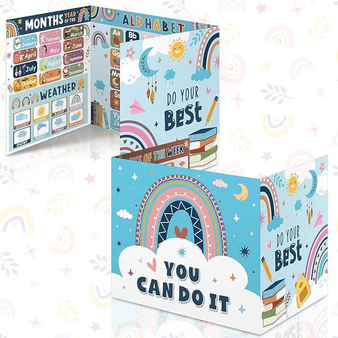 - Double Sided Design: our privacy folders are designed in rainbow styles, one side is designed with months, weather and alphabet etc., the other side includes [YOU CAN DO IT] [DO YOUR BEST] and cute pattern, the testing dividers can help teachers create a colorful classroom