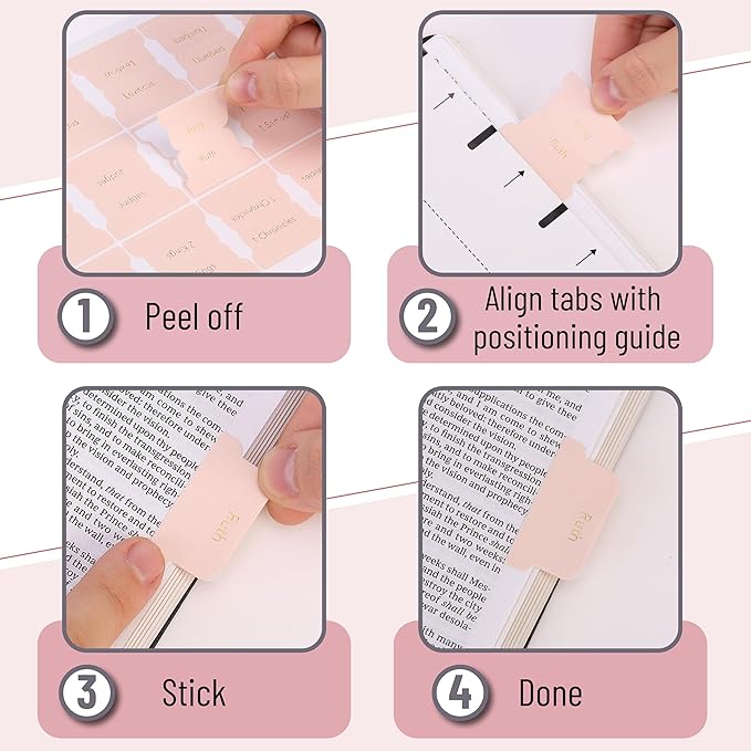 - Mr. Pen Bible tabs are not just functional but a fashion statement for any Bible, introducing a touch of color in a resilient design that's tearproof and built to endure. Their matte finish in light pink, paired with metallic gold lettering, exudes a refined elegance.