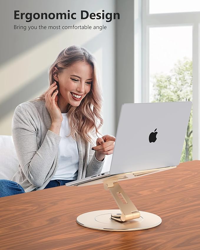 - [Fashion Base] - Loxp 360 rotatable laptop stand for desk is both elegant and durable, With a diameter of 11.02" increased 300% base, and CNC fine carved fashion appearance design.