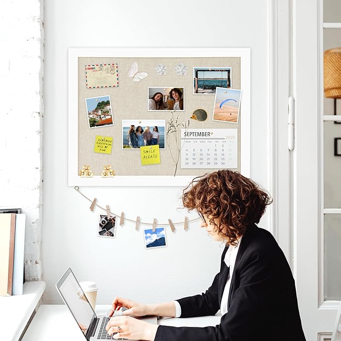 - [Premium Quality Craftsmanship]: Amusignt cork board boasts premium quality. From the vintage wooden frame to the high-quality dense cork and linen material, every element is chosen meticulously to ensure durability and longevity. You can trust that this framed cork board will withstand daily use and provide a reliable display solution for years to come.