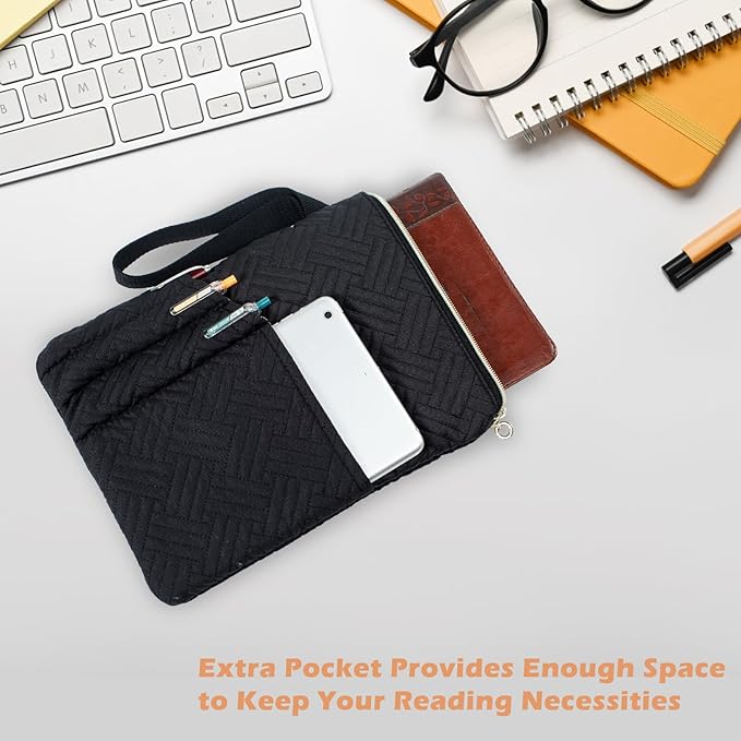 - 【📖PEN SLOTS】 The book sleeve includes convenient pen slots and a pocket for the phone, card, and key. It also comes with a handle.