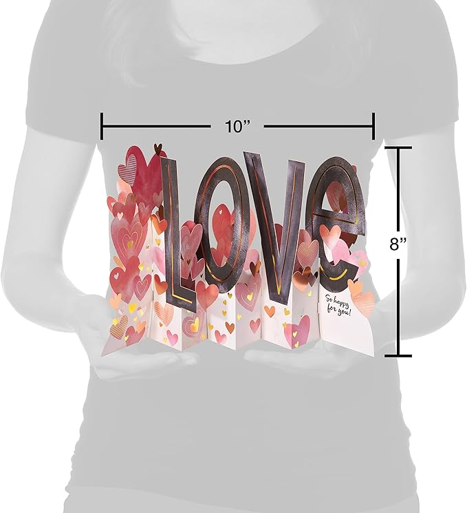 - This decorative romantic Pop-up card for couple features bold letters of "Love" surrounded by hearts, perfect for congratulating any special couple on their wedding, engagement, or anniversary