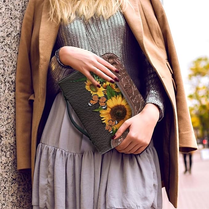 Lotusorchid Bible Covers for Women Men PU Leather Bible Case, Portable Sunflower Butterfly Bible Bag Tote Book Carrying Case Christian Bible Accessories with Handle Pocket, Brown,M