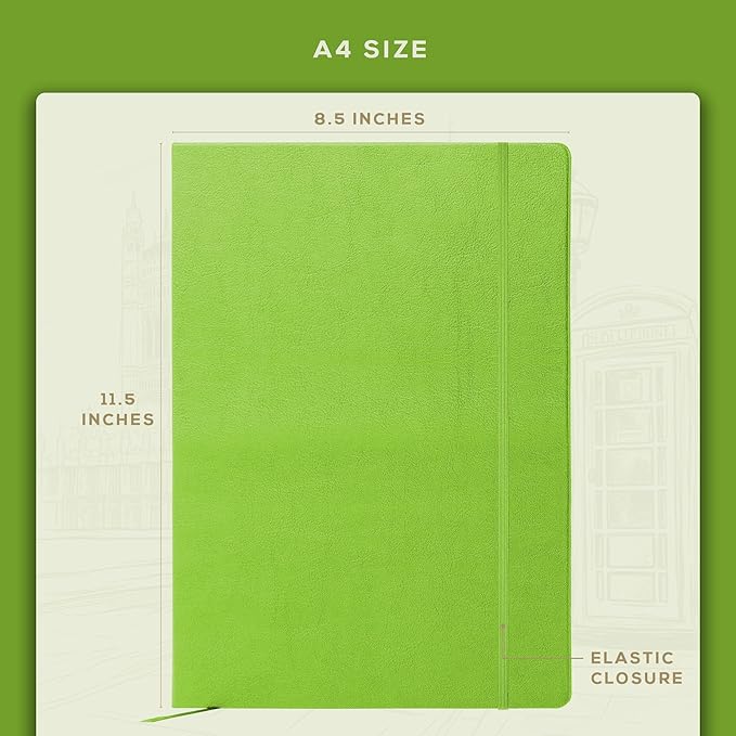 - Made For Your Convenience - The A4 wide ruled journal's 180° lay-flat binding, elastic closure, deep back pocket, and bookmark ribbon offer modern practicality and a premium experience.