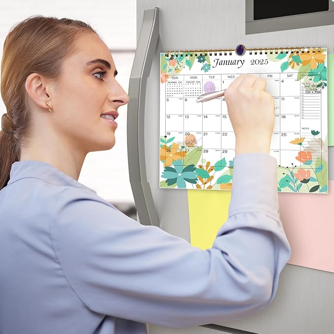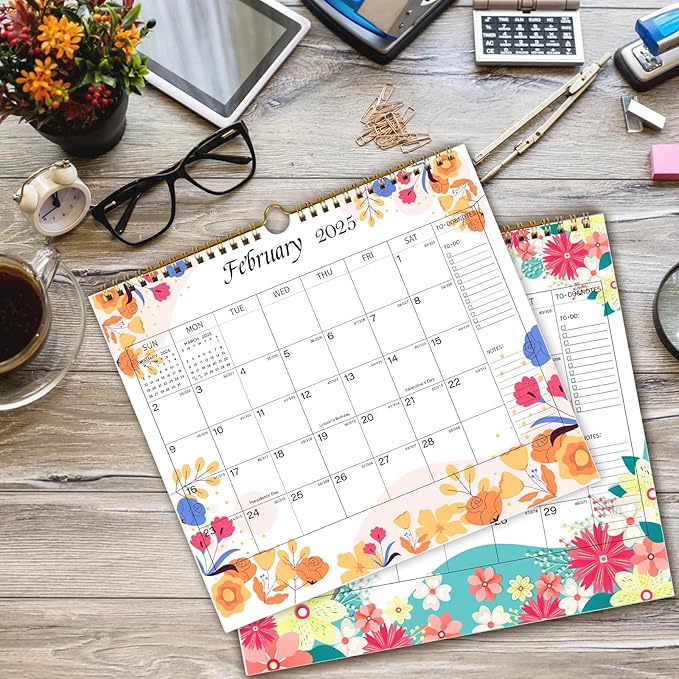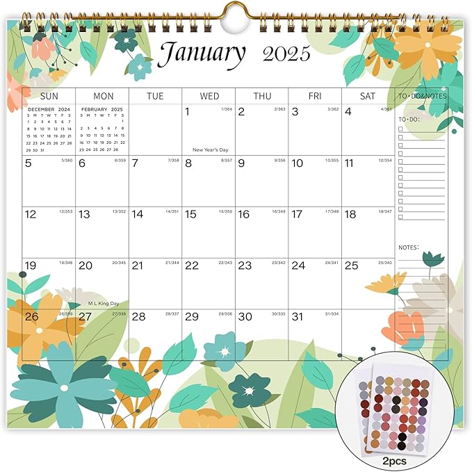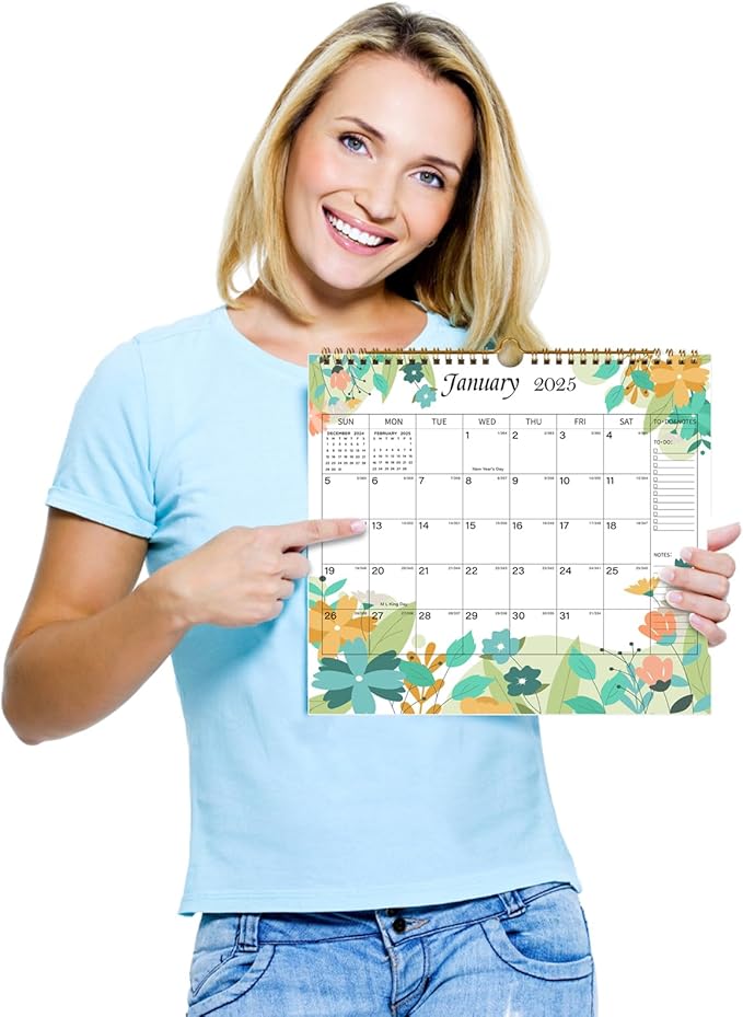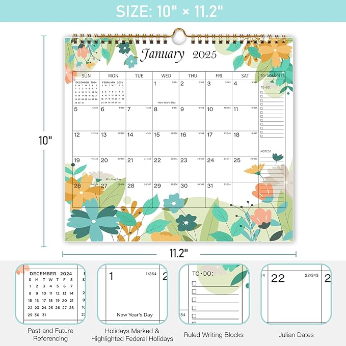 Lbylyhxc 2025 Calendar - from January to December 2025, 12 Monthly Wall Calendar 2025, 10 x 11.2 Inches.Thick Paper with Julian Dates and Block for New Year and Christmas Presents (Flowers)