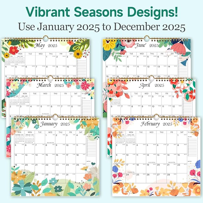 - Special Floral Design: In addition to being a quality planning tool, this wall calendar is also a beautiful addition to your wall; 6 different color combinations add a relaxing and fresh look to your office, home or classroom.
