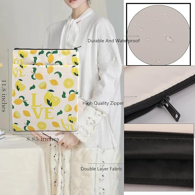 FEELMEM Yellow Lemon Book Sleeve Lemon Lovers Zipper Pouch Book Covers For Fruit Lover Bookworm Reading Lovers
