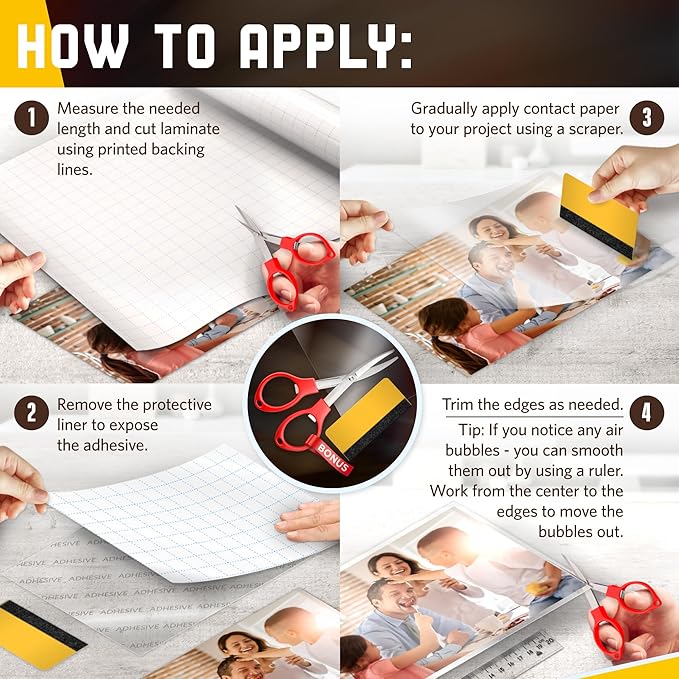 - ✂️ EFFORTLESS USAGE: Matte Contact Paper Peel and Stick includes BONUS SCISSORS to make adjustments for various sizes; Measuring, applying, and adjusting the adhesive liner is easy; The clear contact paper roll can be easily taken off and repositioned