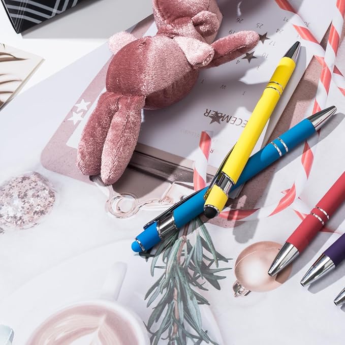 - 2-in-1 Stylus Pen: You will receive 12 engraved pens personalized with stylus tips. Use the touchscreen stylus to take notes on paper, phone or tablet screen.