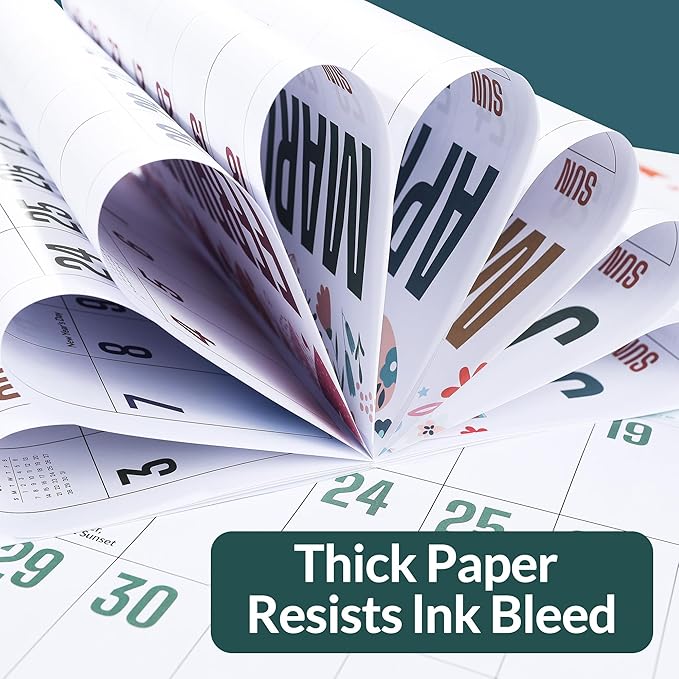 - Premium Quality: Our Large print wall calendar measures 12 by 12 when closed and 12 by 24 when opened. Plus, the paper is designed to prevent ink bleed-through and feathering, keeping your pages clean.