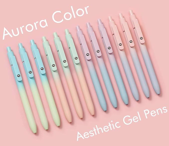 - Aesthetic Pens: 12 pack aesthetic pens with beautiful colors and creative design are super soft and comfortable in the hand. Great for home school office supplies. The prefect gift for family/ friends/ coworkers/ holidays.