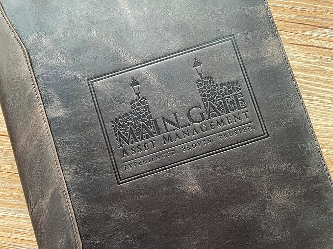 - Leather binder portfolio organizer is a great and practical gift for people working in an office, students, graduates, lawyers, entrepreneurs and anyone who is considering starting a business. Make the portfolio binder personal with initials/name/logo engraving. It's a luxurious personalized portfolio that's perfect for birthdays, graduations, anniversaries, business gifts, Christmas, and New Year's. Just select the "CUSTOM" option and let's create a unique portfolio binder together.