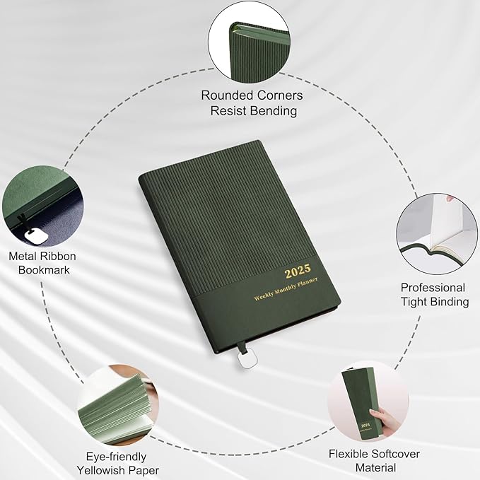 2025 Planner, Weekly Monthly Planner 2025, 8.25"×5.85", 12 Months, JAN.2025 to DEC.2025, School Planner with Soft Flexible Cover, Premium Thick Paper, for School Work Office, Green