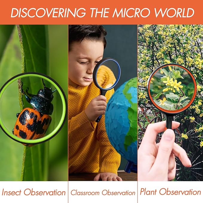 - 10X Magnifying Glass: See even the tiniest details with clarity, enhancing your vision and making reading books and observing objects effortless. Perfect for kids to explore the outdoors and discover new wonders.