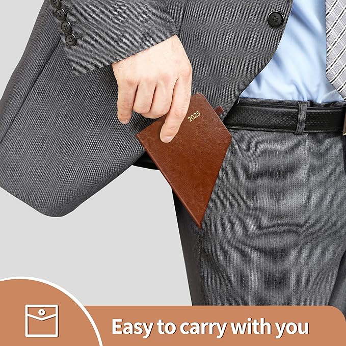 SUNEE 2025 Pocket Weekly Planner for Purse 3.5" x 6" - 12 Month (January 2025 - December 2025), Pocket Size Planner, Hardcover, Notes, Pocket, 100 GSM Paper, Brown