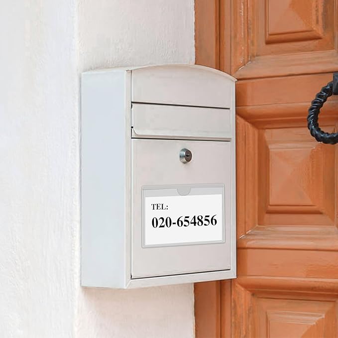 - 【Easy to use】Place your cards, labels, nameplates or photos in the clear adhesive pocket and stick them wherever you need them for easy tagging or organizing. Adhesive label pockets against fingerprints, water, dust or dirt.