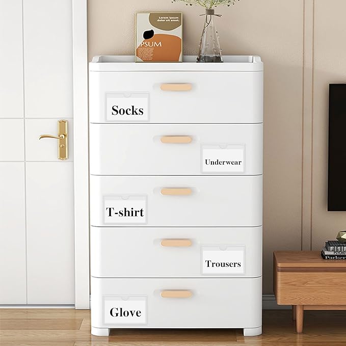 - 【Material】Labels holder for storage bins is made of PVC material, which is transparent and clear, not easy to deform, and not easy to turn yellow or crack after long-term use. But please try to avoid high temperature environment.
