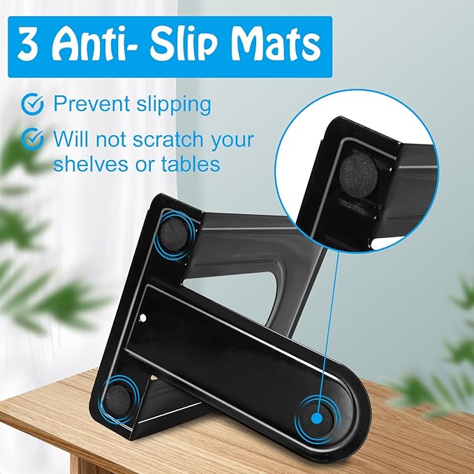 - Stable & Anti-Slip: Our metal book ends are designed in T shape, which can provide good support to ensure the whole structure stable. Three foam Non-skid pads are at the bottom of the bookends, helping hold the books in place.