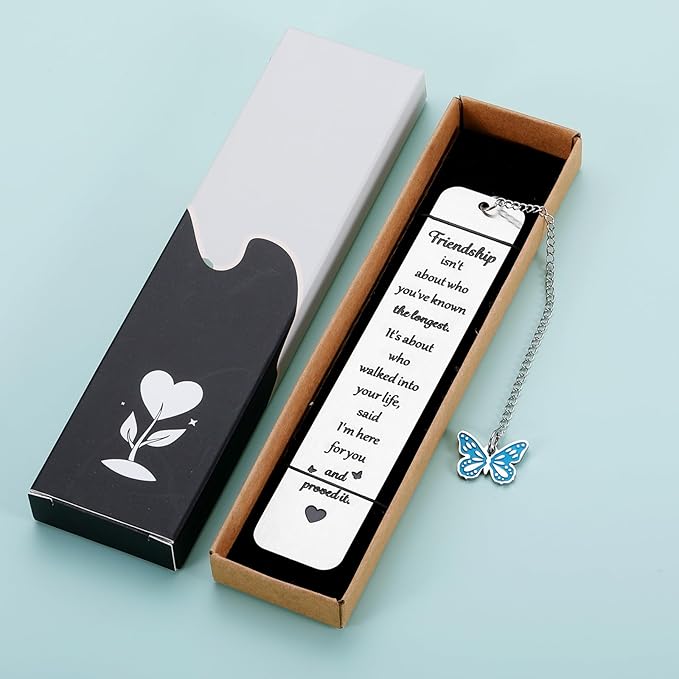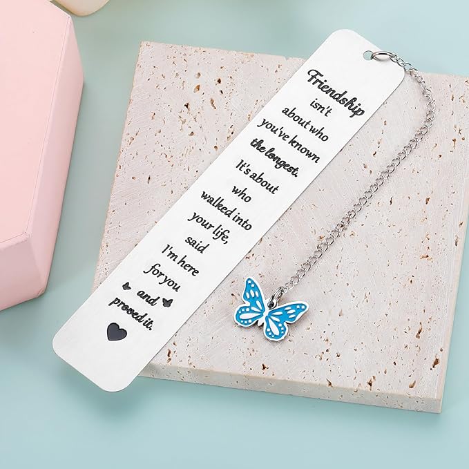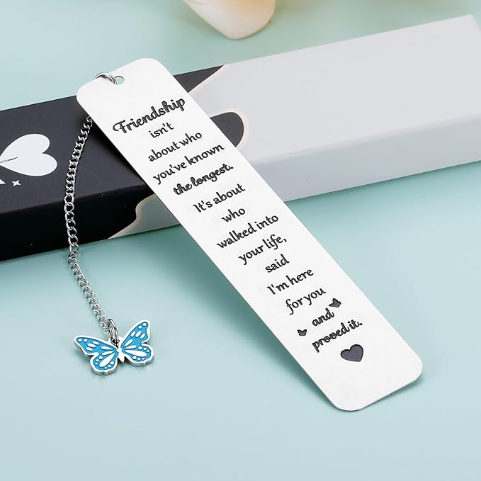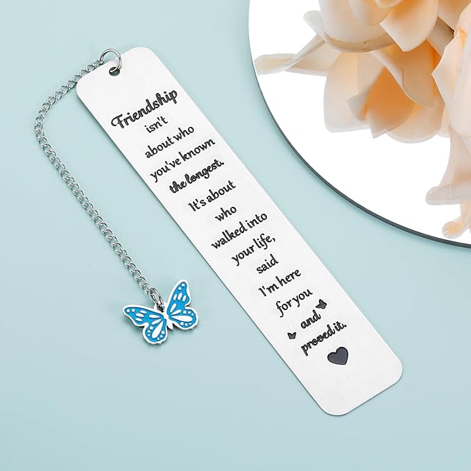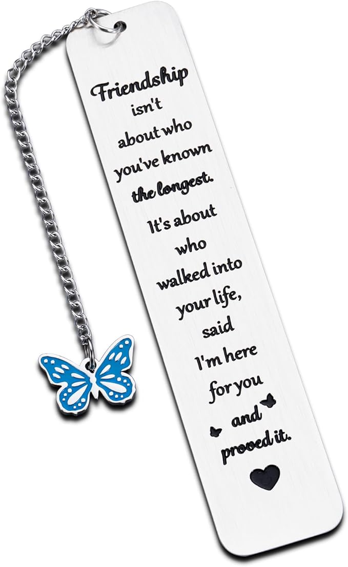 - ❤Funny Friendship Bookmark for Friends: Engraved With“ Friendship Isn't About Who You've Known The Longest, It's About Who Walked Into Your Life, Said I'm Here For You And Proved It”, With a Blue Exquisite Butterfly Accessory. The Best Gifts For Women Friends, Bestie, Girls, Sister, Female, To Show Friendship To Them And Tell Them How Important They Mean To You, A Perfect Token Of Love That She Can Carry To Know How Special She Is and Cherish This Gift And The Friendship It Expresses.