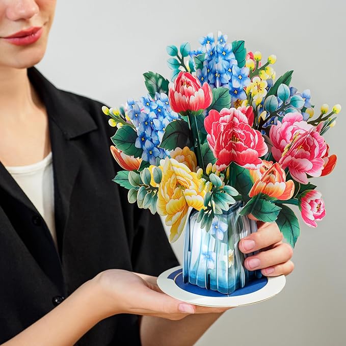 - Innovative 2-in-1 Design - The HugePop pop up flower bouquet card is the masterpiece that suits any occasion. It can be detached to display as a bouquet of flowers forever or presented as a card. It's a thoughtful and unique gift that is sure to be appreciated by anyone who receives it.