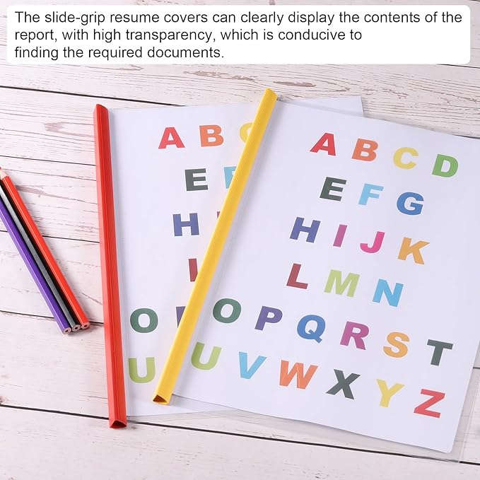 - The slide-grip resume covers can bind documents into volumes without punching holes and can organize documents, resumes, reports, and other paper documents for you very well. Contribute to the classification, collection, storage and delivery of various documents. Very suitable for home, office, study, and DIY.