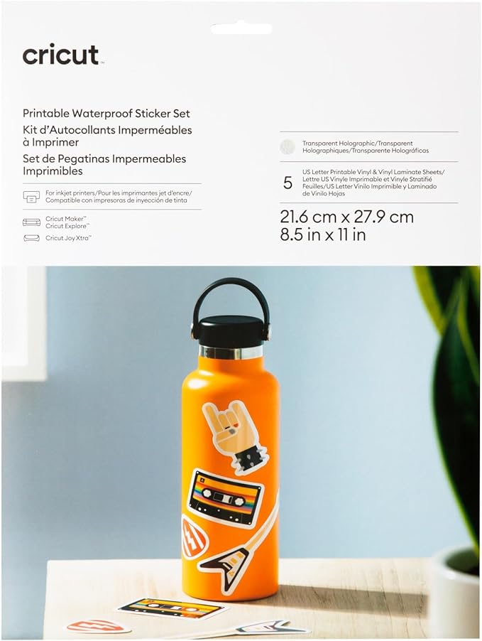 - HOLOGRAPHIC WATERPROOF STICKERS - Elevate your DIY game with the Cricut Printable Waterproof Holographic Sticker Set (5 ct). Compatible with your home inkjet printer, our vinyl sticker paper is perfect for creating custom, full-color waterproof stickers