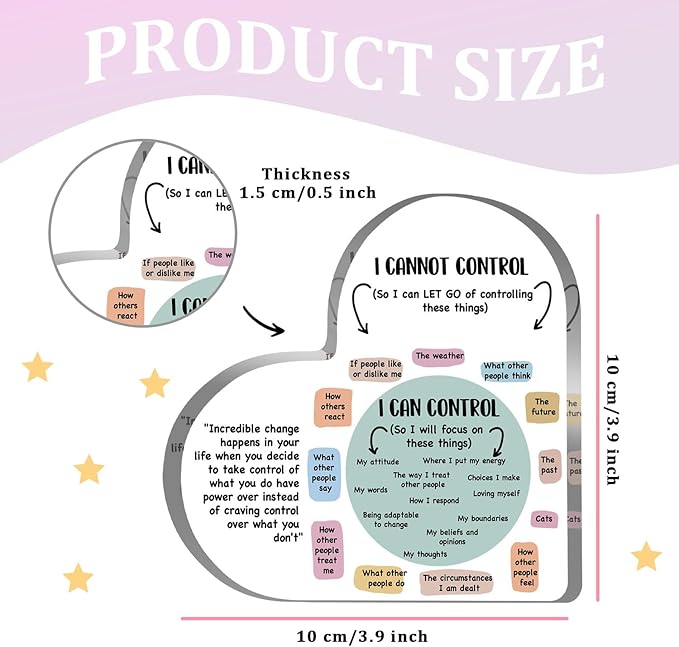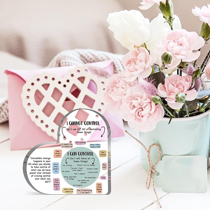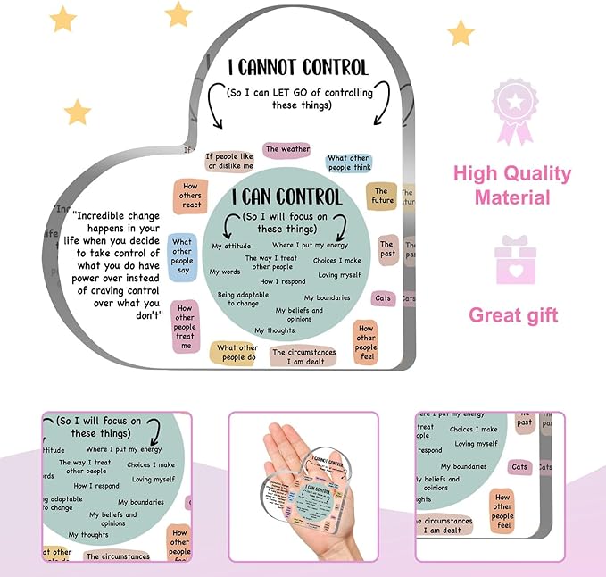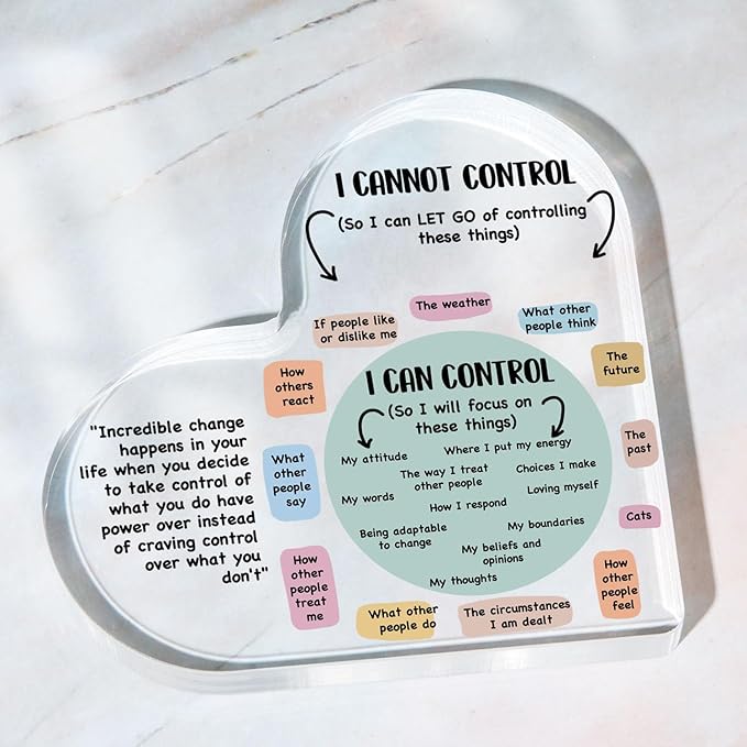 Mental Health Things I Can Control Decor, Mindfulness Decor for Therapy Office Acrylic Heart Gifts, School Counselor Sign Therapist Office Art Decorations for Therapist Office Living Room Bedroom Desktop Gift