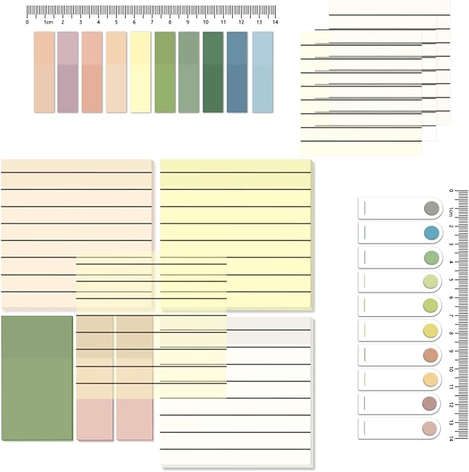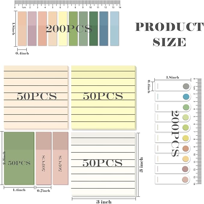 - What Will You Get: 150 Sheets transparent sticky notes with lined( 3x3 inch ), 50 Sheets green translucent sticky notes(2.3x1.45 inch), 100 Sheets pink translucent sticky notes(2.3x0.7 inch), 400 Sheets morandi pastel different colors book tabs(1.8x0.4 inch)