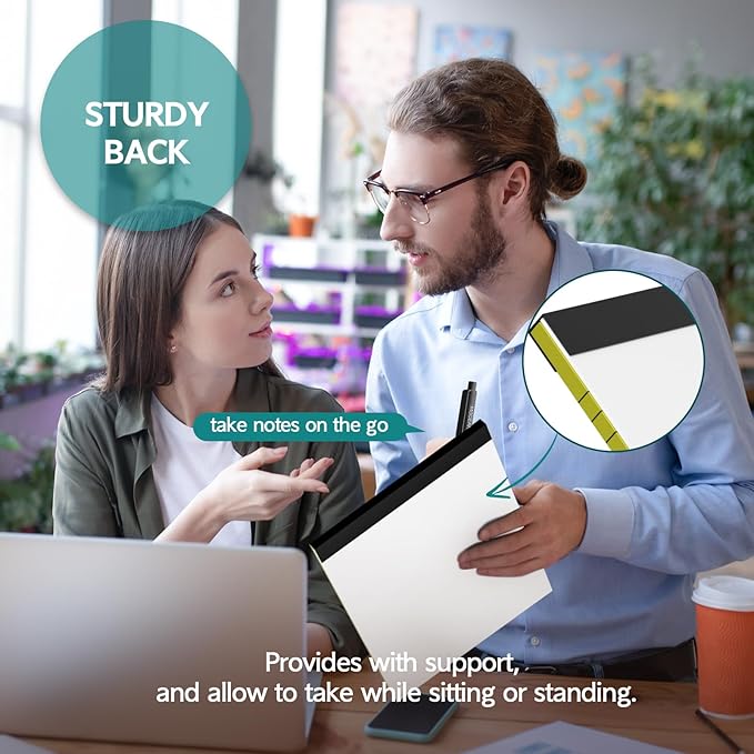 - 【Keep Notes Secure】Each yellow writing pads 8.5 x 11 has sturdy and durable top bindings. The notebook pads 8.5 x 11 have a tear-off design allows for easily and neatly removing individual sheet of paper. Each yellow paper 8.5 x 11 is fixed to the top edge with a cardboard backing, which provides the notepad with extra support, and allows to take notes while on your lap or standing.