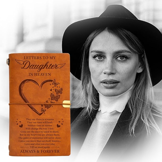 Vetbuosa Letter to Daughter in Heaven Leather Journal,Memorial Gifts for Loss of Daughter,Loss of Daughter Sympathy Gifts,Bereavement Gift Idea,In Memory of Loved One Gifts
