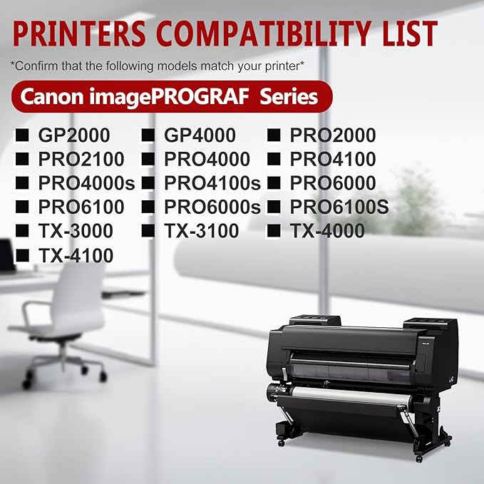 - Compatible Printers: Works for Canon imageprograf GP-2000 GP-4000 PRO-2100 PRO-4000 PRO-4100 PRO-6000 PRO-6100 TX-3000 TX-3100 TX-4000 TX-4100 large format printers