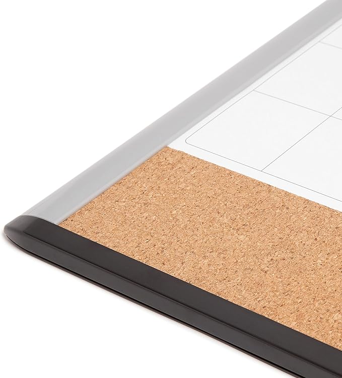 U Brands 3-in-1 Magnetic Dry Erase Calendar Board, Black and Gray Frame, Magnet and Marker Included, 16" x 20" (6712U00-01)