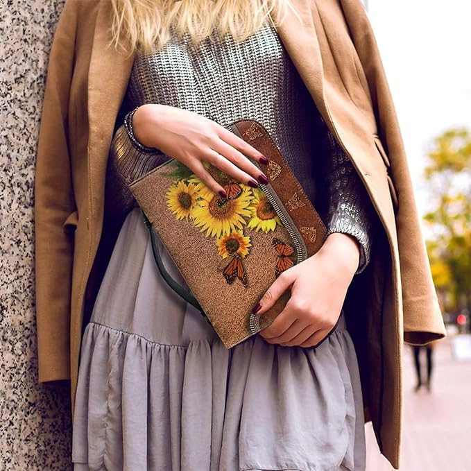 Lotusorchid Butterfly Bible Bags, Sunflower Faux Leather Bible Covers with Handle Pockets for Women, Portable Sturdy Bible Bag for Girls Ages 8-12, Christian Bible Study Accessories, Brown,M