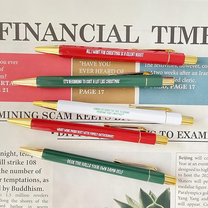 Jxueych Funny Pens 5-Count, Black Ink,Medium Nib 1.0mm, Funny Office Gifts for Coworkers, Personalized Pens Vibrant Funny Quotes Swear Word Daily Pen Set (J)
