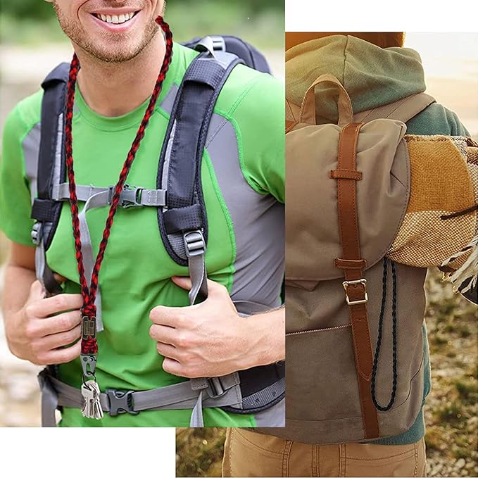 - 【Widely Used】As a cool neck lanyard key chains, you can connect your keys, ID badges, camera, flashlight, wallet, whistle and etc. You can also remove the parachute rope, which can be used to tie shoes, hang clothes, fix things, and even tent lines. You can easily and confidently enjoy any outdoor activities!