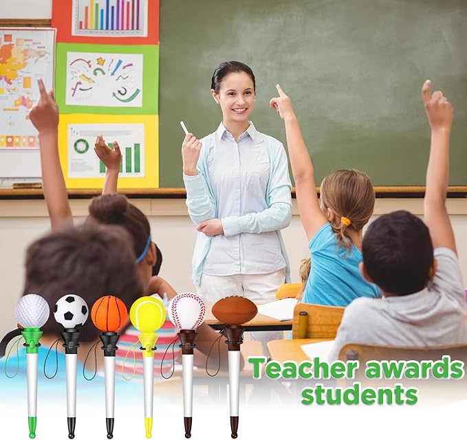 - Sport Themed Pens: the package include 6 different sport pens, soccer ball, football, tennis, basketball, golf ball and baseball, these novelty pens are designed with a hoop and a small realistic ball at the top, press it, the ball can eject, let your friends feel happy and relaxed, you can play with friends, harvest more fun