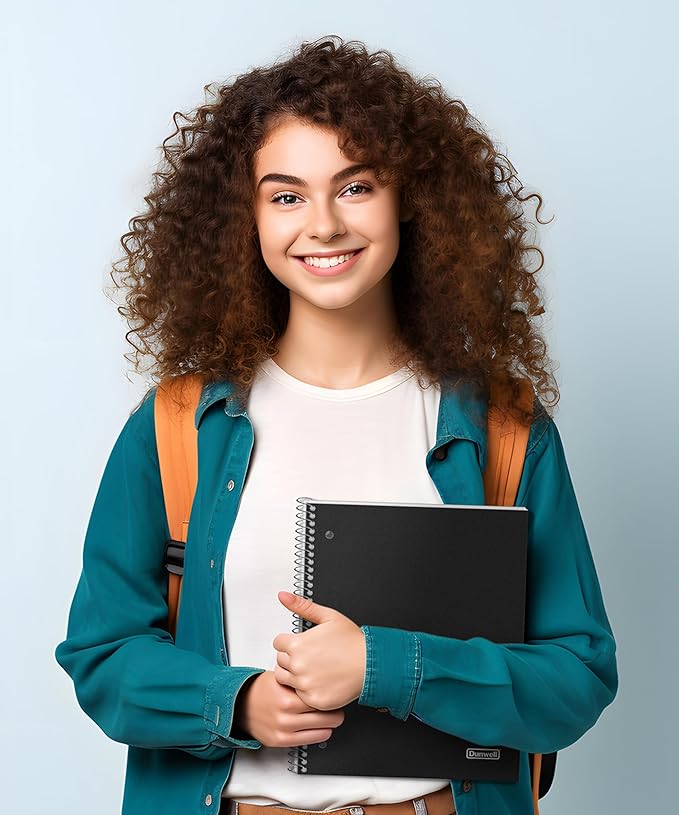 Dunwell College Ruled Spiral Notebook (Black), 1 Subject Notebook 8.5 x 11 for School, Plastic Cover, Pocket Divider, 100 Sheets (200 Pages), 3-Hole Punched Perforated 8 1/2 x 11 Paper