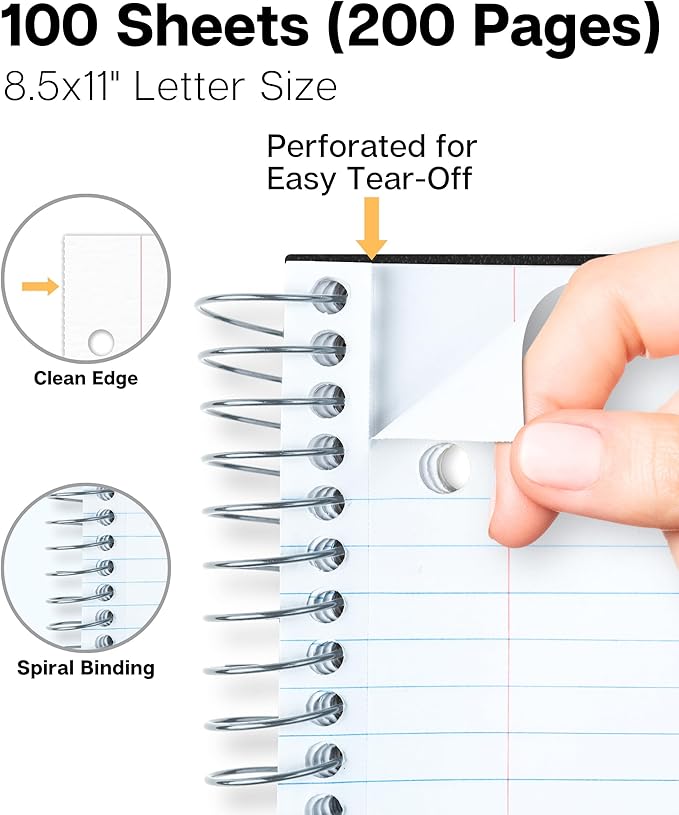 - 100 Sheets (200 Pages) College Ruled Paper: Standard 9/32” width, Take more notes per page. 3-Hole punched, Perforated for easy tear off. Detached paper size: 8-1/2” x 11”.