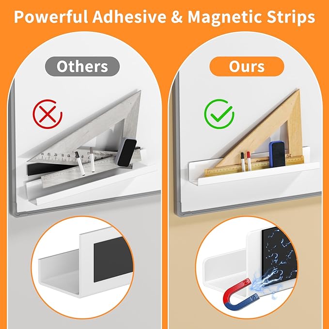 - 【Convenient Size and Design】 With dimensions of 17*2.2*2.2 inches and a curved edge design, our magnetic display shelves allows for organized placement of books and teaching supplies. The 0.75 inch height provides a barrier to prevent items from falling off.