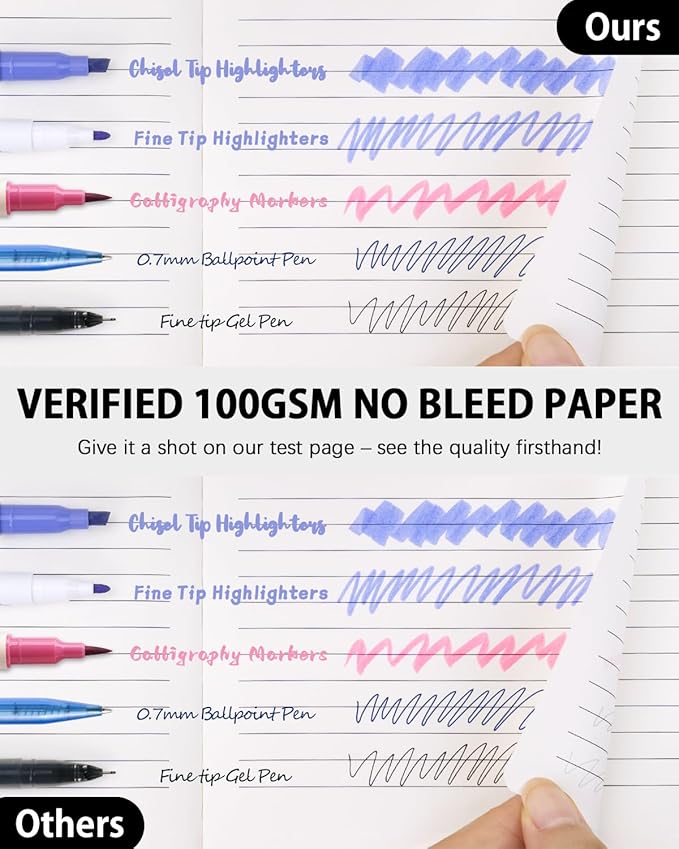 - Smooth Writing: Delicate and thick paper(100 gsm acid-free paper) ensures a comfortable touch and eye protection. Comfortable for both writing and reading. Suitable for both right-handed and left-handed users