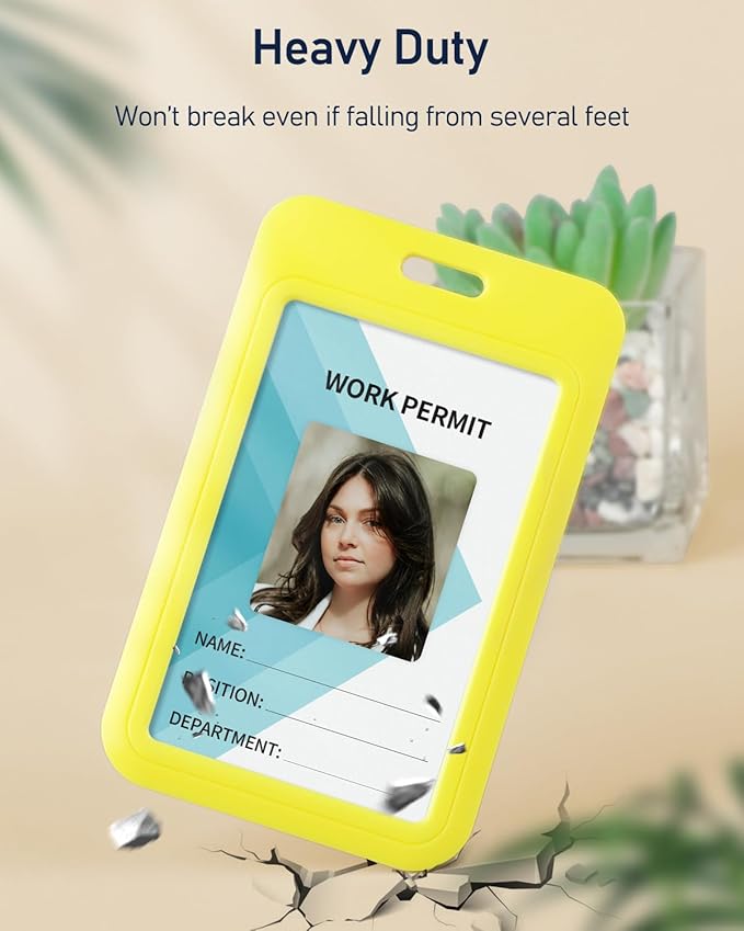 Uniclife 3 Pack Sliding ID Badge Holder Vertical Hard Plastic Case with Clear Window Yellow Card Protector Pouch for Office School ID Credit Cards Proximity Key Cards Driver’s Licenses and Passes