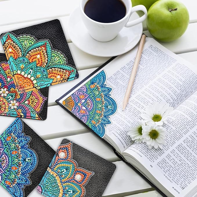 - 【Easy to Use】Our corner bookmark set comes with a drawing tool, and each bookmark has a different pattern. First, tear off the protective film on the bookmark, then pour the corresponding diamond number into the tray, dip the pen on the glue, and stick the corresponding diamond number to the bookmark.