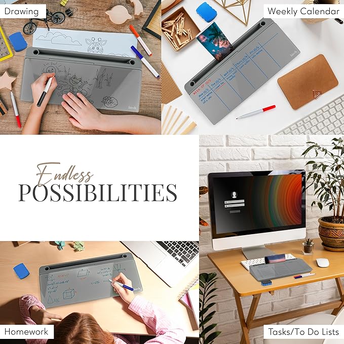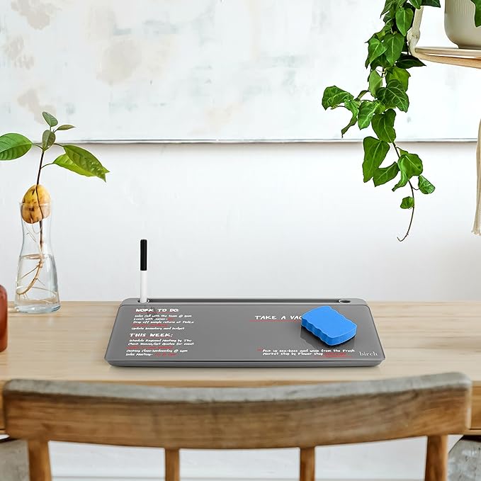 Birch Desktop Whiteboard with Storage & Multiple Markers Surface Desktop Glass Dry Erase Board Desk Top White Board Dry Erase Notepad Desk White Board Tabletop Desk Whiteboard (Charcoal)