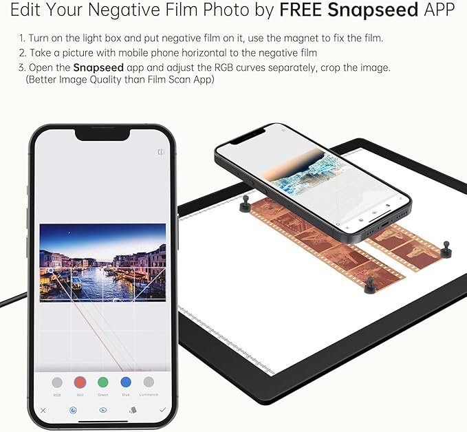 - Ideal Photographic Light Source: Color temperature: 5600K±200k, simulates natural white light to give negatives and slides a natural tone when viewing or photographing. Color Render Index>95Ra(measured data 98.6Ra), the high CRI helps restore true color of the original image. A perfect light tool for viewing and digitalizing negatives and slides with your phone and camera