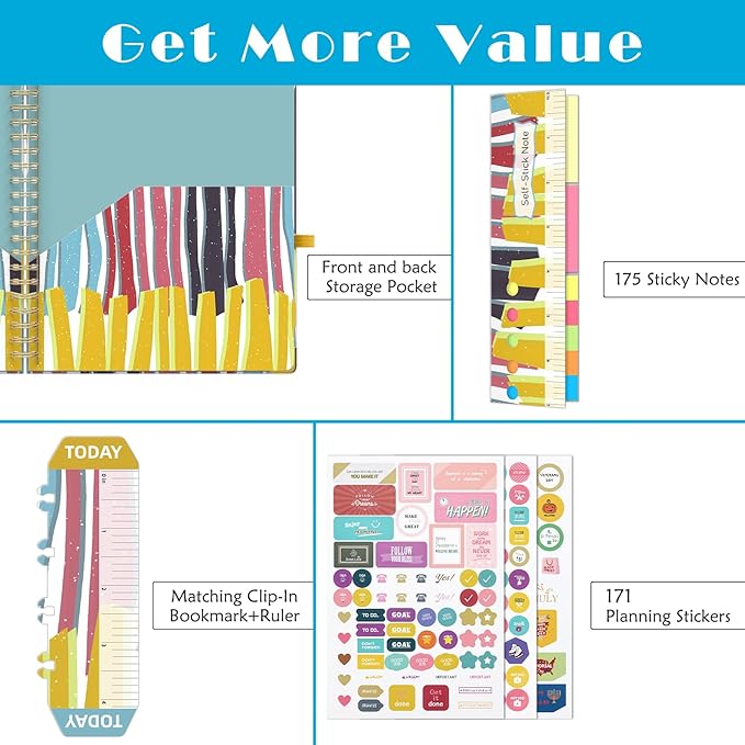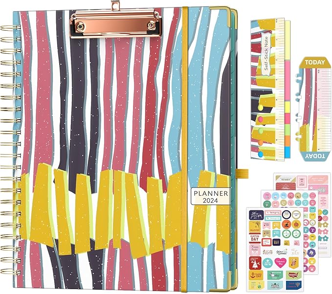 - Clipboard - Academic Planner 2024 has 175 sticky notes+ matching clip-In bookmark + ruler+163 calendar stickers. The paper size of 8.5"x11" (A4 Size) is paired use with a sturdy clipboard, you can write down your future plans no matter where you are