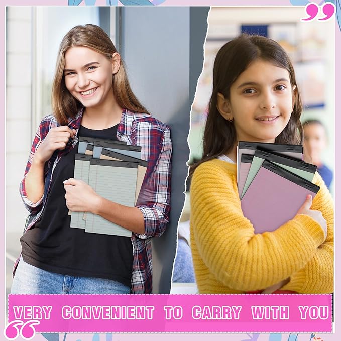 Lincia 24 Pcs 5" x 8" Colored Note Pads Mini Legal Pads Ruled 50 Sheets Per Micro Writing Pads Perforated and Lined for College Office Supplies (Sweet Colors)