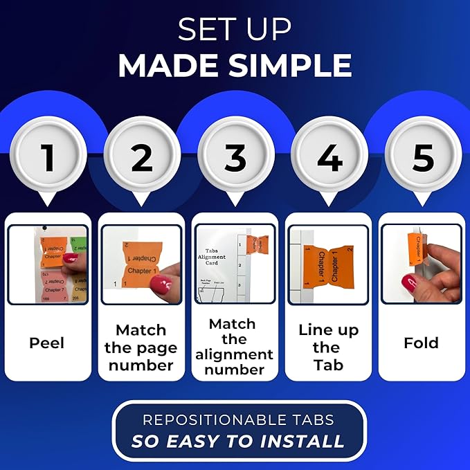 - Includes Alignment Card for Perfectly Aligned Tabs: Our tabs are easy to install in a perfect alignment using our tabs alignment system. Each tab includes the location and page number for super easy installation.