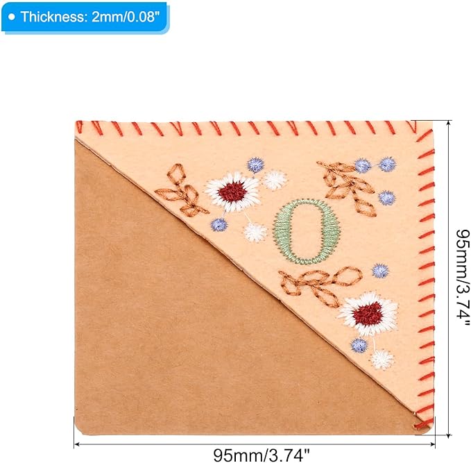 - Material: Felt, Cardboard; Color: Pink; Letter: O; Size: 95mmx95mmx2mm / 3.74"x3.74"x0.08"; Packing List: 1 x Embroidered Corner Bookmark