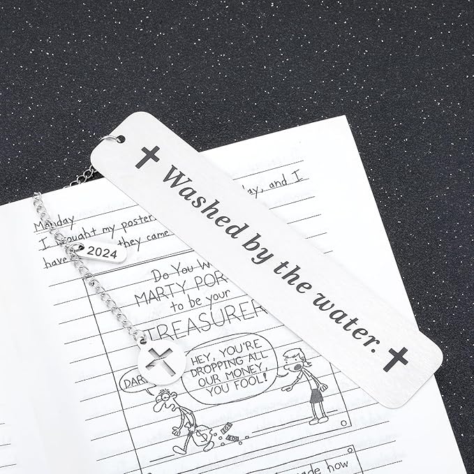 - Baptism Bookmark for Women: Look at this elegant and meaningful bookmark, it reads as "left it in the water", and is also a great gift for new babies, teen boys, girls, Christian believers, and bible lovers. Mind baptism can purify your inner world, never miss this unique baptism bookmark. Best Christmas gifts for teens girls boys, daughter son, grandson granddaughter.