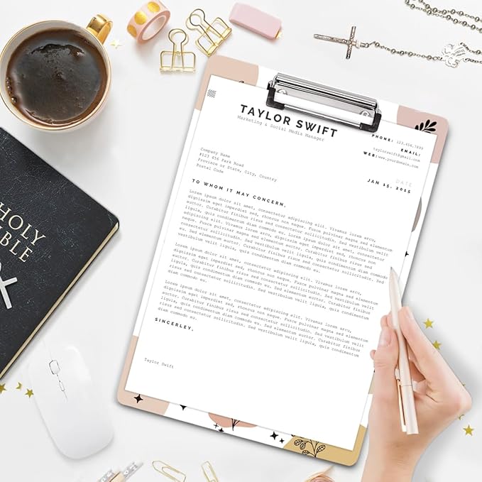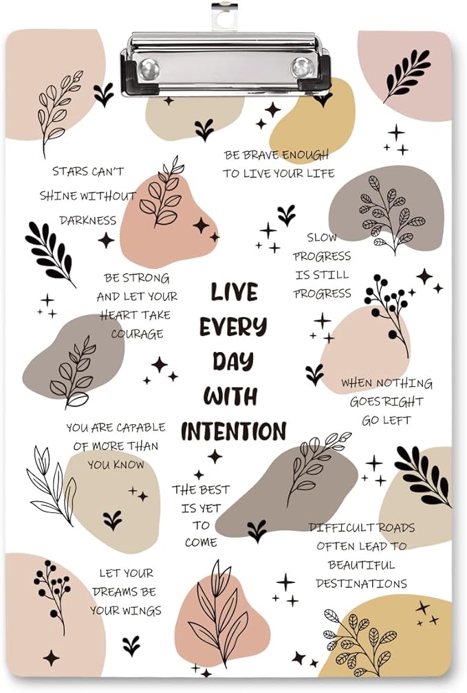WAVEYU Cute Hardboard Clipboard for Women Men, Clipboard with Low Profile Clip for School and Office Use,12.5"x 9"-Live Everyday with Intention